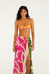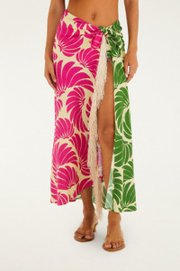 Embrace vibrant energy with the Banana Wings Midi Skirt from FARM Rio. This playful piece dances with bold banana-yellow hues and tropical leaf patterns, effortlessly capturing the spirit of Brazilian sunshine. Its flowing silhouette gently sways with every step, while a subtle side slit adds a touch of flirtiness. Perfect for pairing over your favorite swimwear, this skirt invites warmth and joy into your sun-soaked adventures. Ref.: 344678