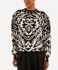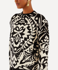 DETAILS Knitted jumper Relaxed fit Dropped shoulders Long sleeves High neckline Contrast trims Jacquard Pineapple Love print COMPOSITION & CARE 65% Viscose; 35% Polyester Hand wash