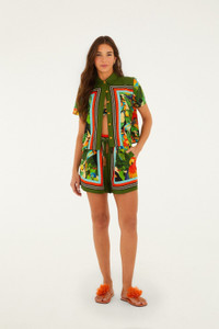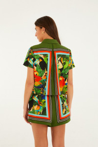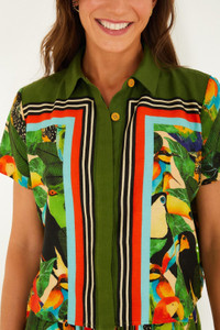 The Bird Leaves Shirt from FARM Rio brings tropical spirit to your swimwear with its vibrant leaf and bird motifs in lush greens and warm coral hues. Crafted from lightweight, breathable fabric, its relaxed silhouette dances effortlessly with soft ruffles along the sleeves, adding a playful, breezy touch. This piece invites you to embrace sun-soaked days with joyful ease, blending nature-inspired charm and comfortable elegance into your beachside moments. Ref.: 344737