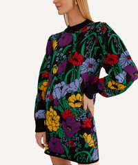DETAILS Knitted sweater dress Relaxed, easy fit Mini length Dropped shoulders Long, slouchy sleeves Round neckline Chunky black trims Black Bucolic Knit print COMPOSITION & CARE 68% Viscose; 32% Polyester Gentle machine wash