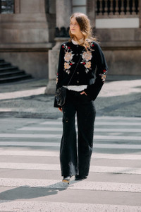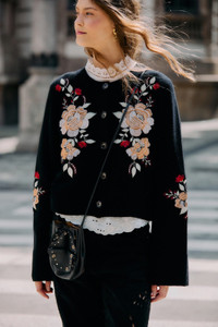 Embrace cozy elegance with FARM Rio’s Black Flowers Embroidered Buttoned Knit Cardigan. This flattering knitwear piece features a soft round neckline and lush black fabric adorned with intricate floral embroidery, adding a touch of artistry and charm. The buttoned front invites effortless layering, while its relaxed silhouette offers comfort with a playful, feminine spirit. Perfect for those who cherish warmth wrapped in unique, handcrafted details. - Closure: Center Front Buttons - Button type: Fabric Covered Button - Sleeve type: Long Sleeve Ref.: 352031 Composition 100% WOOL Care Instructions HAND WASH SEPARATELY, DO NOT BLEACH, DO NOT TUMBLE DRY, DRY FLAT, IRON AT LOW HEAT, DRY CLEAN WITH ANY SOLVENT EXCEPT TRICHLOROETHYLENE Fabric origin: China Product manufacturing: China Product printing: China
