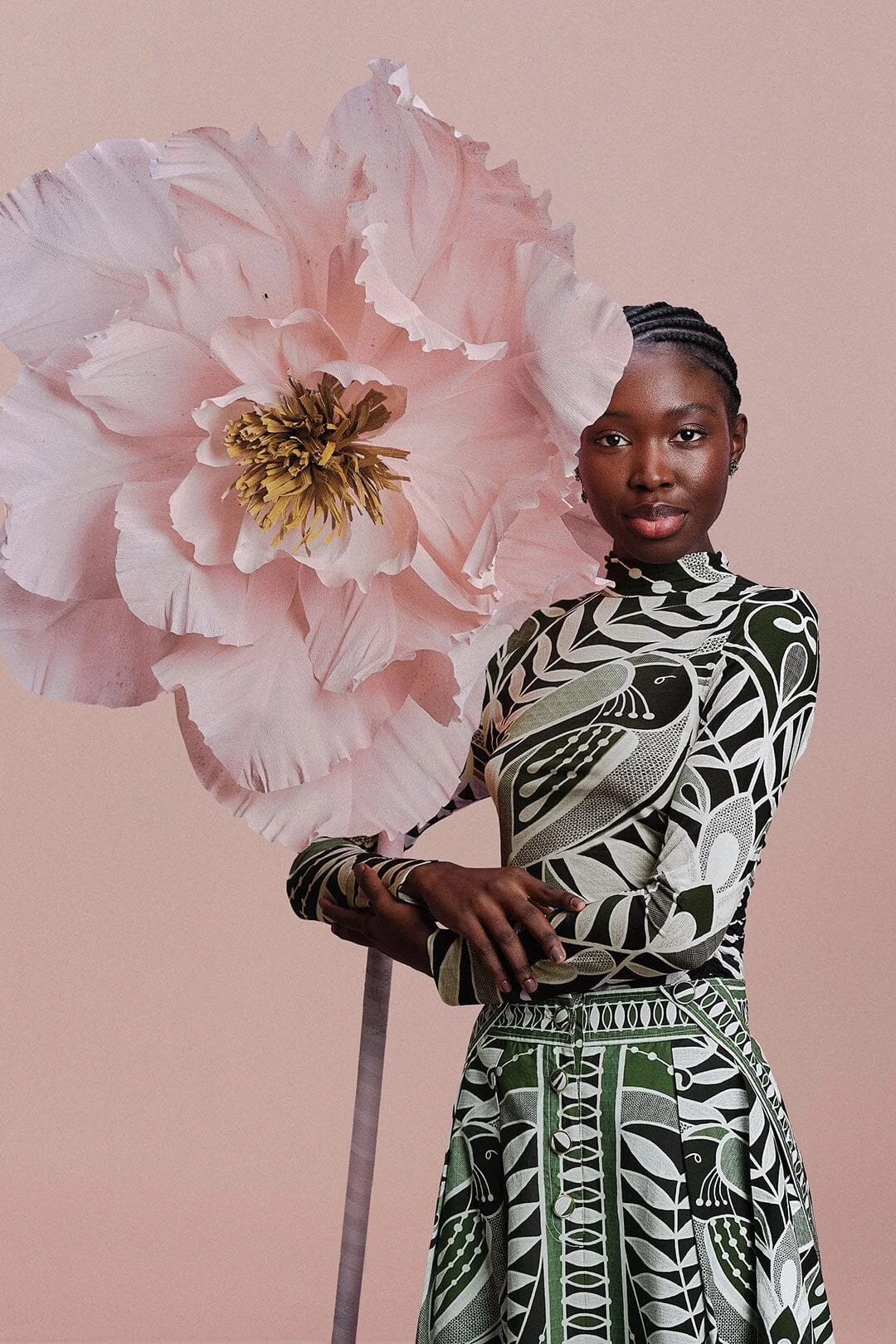 Embrace sophistication with the Black Lace Nature Jersey Blouse, featuring a captivating high neckline for elegant comfort. This unique top showcases an intricate lace-inspired pattern in contrasting black and white, adding a touch of nature's charm to your wardrobe. The form-fitting silhouette and delicate detailing create a harmonious blend of style and artistry, perfect for those who appreciate fashion with a poetic edge. Ref.: sku_329045 Composition 85% VISCOSE 15% ELASTANE Care Instructions MACHINE WASH, GENTLE CYCLE, DO NOT BLEACH, DO NOT TUMBLE DRY, LINE DRYING, IRON AT MEDIUM HEAT, DRY CLEAN WITH ANY SOLVENT EXCEPT TRICHLOROETHYLENE Product manufacturing: TURKEY Product printing: TURKEY