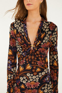 Step into effortless elegance with the Black Lili Long Sleeve Maxi Dress by FARM Rio. Its deep V neckline beautifully frames the decolletage, while the flowing silhouette sways with every movement, blending comfort and grace. Crafted in a rich black fabric, subtle craftsmanship details add a soft texture, inviting warmth and playful charm. This dress speaks to your free-spirited soul, perfect for moments when you want to feel both relaxed and radiant. - Closure: Invisible Zipper At Center Back - Sleeve type: Long Sleeve Ref.: 344472 Composition 100% VISCOSE Care Instructions MACHINE WASH GENTLE CYCLE, DO NOT BLEACH, DO NOT TUMBLE DRY, DRY FLAT, IRON AT LOW HEAT, DO NOT DRY CLEAN Fabric origin: China Product manufacturing: China Product printing: China