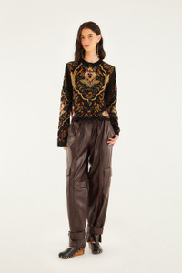 The Black Majestic Hearts Knit Cardigan weaves a warm story through its intricate pattern of rich earthy tones and regal floral motifs. Crafted with a soft knit fabric, it showcases a timeless round neckline and a relaxed silhouette that embraces comfort with effortless elegance. This piece invites playful sophistication, where bold hearts and botanical details dance across the fabric, making it a captivating layer for both cozy days and lively evenings. - Closure: Center Front Buttons - Button type: Plastic Button - Sleeve type: Long Sleeve Ref.: 351826 Composition 65% VISCOSE 35% POLYAMIDE Care Instructions HAND WASH SEPARATELY, DO NOT BLEACH, DO NOT TUMBLE DRY, DRY FLAT, IRON AT LOW HEAT, DRY CLEAN WITH ANY SOLVENT EXCEPT TRICHLOROETHYLENE Fabric origin: China Product manufacturing: China Product printing: China