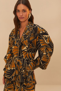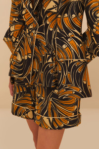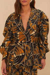 Embrace bold elegance with the Black Toucans Spirals Blazer from FARM Rio. Showcasing a vivid toucan-inspired spiral pattern, this piece bursts with lively oranges against a deep black backdrop. The collar neckline adds a touch of sophistication, while the relaxed cut ensures comfort. Perfect for those who adore playful yet refined style, this blazer seamlessly combines artistic flair with a warm, inviting design. FARM Rio Ref.: sku_331965 Composition 97% COTTON 3% ELASTANE Care Instructions MACHINE WASH GENTLE CYCLE, DO NOT BLEACH, DO NOT TUMBLE DRY, LINE DRYING, IRON AT LOW HEAT, CRY CLEAN WIH ANY SOLVENT EXCEPT TRICHLOROETHYLENE Product manufacturing: CHINA Product printing: CHINA