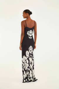 Embrace effortless elegance with this Black & White Floral Arabesque Maxi Dress, crafted from eco-friendly Lenzing Ecovero Viscose. Its sleek slip silhouette gently skims the body, enhanced by a graceful square neckline and delicate spaghetti straps. Bold, oversized floral patterns in striking black and white create a captivating contrast, evoking a playful yet refined spirit. This dress flows with ease, perfect for those who cherish comfort wrapped in Brazilian charm.- Sleeve type: Sleeveless Ref.: 346112 Composition 100% VISCOSE Care Instructions MACHINE WASH GENTLE CYCLE, DO NOT BLEACH, DO NOT TUMBLE DRY, LINE DRYING, IRON AT MEDIUM HEAT, DRY CLEAN WITH ANY SOLVENT EXCEPT TRICHLOROETHYLENE Fabric origin: Turkey Product manufacturing: Turkey Product printing: Turkey