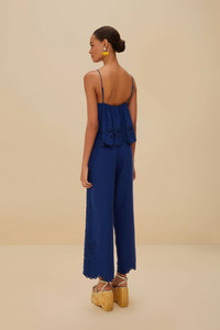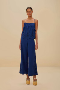 Embrace vibrant elegance with FARM Rio's blue richelieu LENZING™ ECOVERO™ Euroflax™ pants. Crafted from responsible materials, these pants feature an enchanting blue hue with intricate richelieu detailing, creating a delightful mix of artistry and style. The silhouette flows effortlessly, offering both comfort and sophistication with every step. Perfectly capturing the playful spirit of Brazilian fashion, these pants are a joyful addition to any wardrobe, inviting a sense of warmth and charm. - Closure: Invisible zipper at side seam - Pockets: Side seam pockets - Leg fit: Wide 100% LENZING™ ECOVERO™ Viscose: the eco-responsible fibers generate up to 50% lower emissions and water impact compared to generic viscose. Euroflax™ Premium Linen: certified GMO-free plant fiber produced without artificial irrigation that has guaranteed traceability and proven comfort, thermoregulation, moisture management, and breathability. Ref.: sku_342001 Composition 55% LINEN 45% VISCOSE Care Instructions HAND WASH SEPARATELY, DO NOT BLEACH, DO NOT TUMBLE DRY, DRY FLAT, IRON AT LOW HEAT, DRY CLEAN WITH ANY SOLVENT EXCEPT TRICHLOROETHYLENE Product manufacturing: CHINA Product printing: CHINA