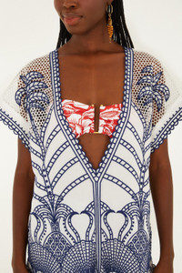 Dive into sunny days with the Blue Richelieu Plunging Neck Romper by FARM Rio. This swimwear piece features a vivid blue hue adorned with intricate Richelieu embroidery, creating a playful yet sophisticated texture. The deep plunging neckline and relaxed silhouette beautifully balance allure and comfort, while the lightweight fabric moves effortlessly with you. Perfect for embracing warmth and vibrant energy, it captures the joyful spirit of Brazilian summers with every wear. Ref.: 344795