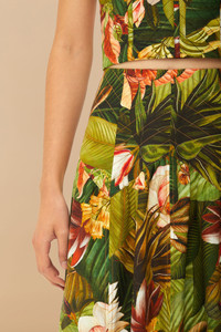 Experience the vibrant allure of the multicolor botanical forest lenzing™ ecovero™ euroflax™ midi skirt. This exquisite piece showcases a captivating blend of lush, nature-inspired patterns, enveloping you in a tapestry of rich colors and textures. The midi length and flowing silhouette add playful movement to every step, while gentle pleats evoke a sense of grace. Crafted from responsible materials, it’s a harmonious addition to your wardrobe’s story. Ref.: sku_332699 Composition 55% LINEN 45% VISCOSE Care Instructions MACHINE WASH GENTLE CYCLE, DO NOT BLEACH, DO NOT TUMBLE DRY, LINE DRYING, IRON AT LOW HEAT, CRY CLEAN WIH ANY SOLVENT EXCEPT TRICHLOROETHYLENE Product manufacturing: CHINA Product printing: CHINA
