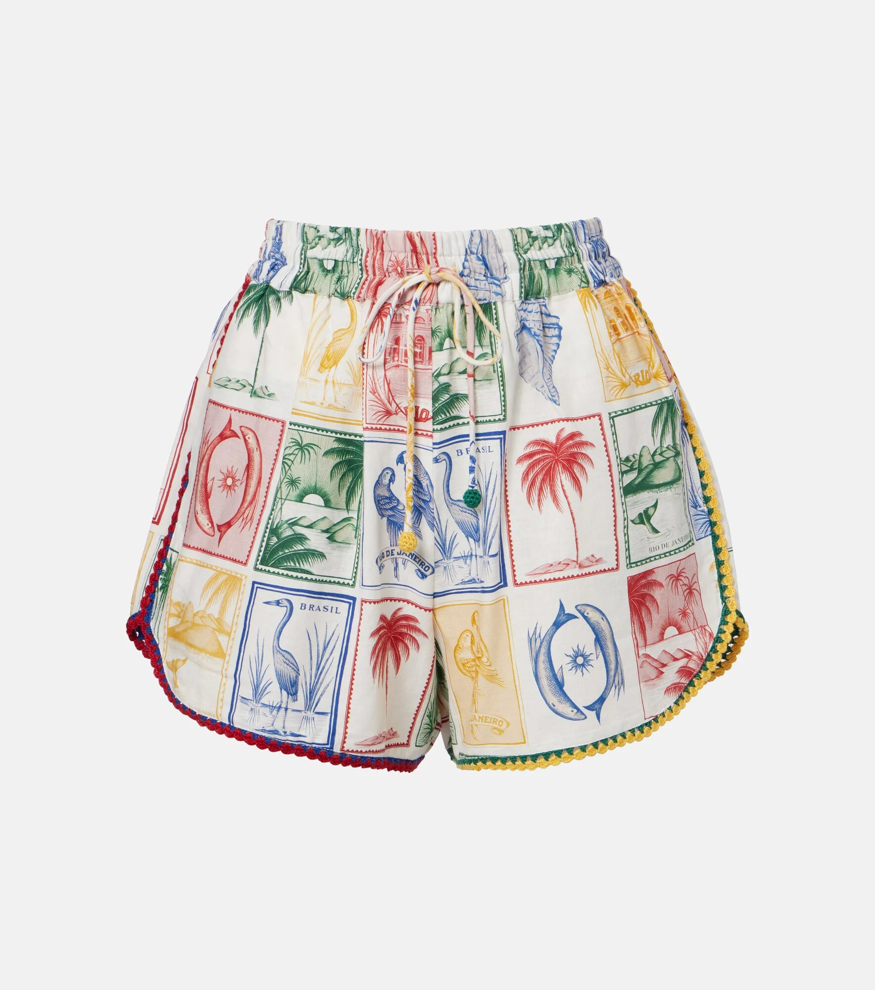 Farm Rio's signature vibrant prints celebrate the brand's Brazilian heritage and invite joyful self-expression. The Brasil Vintage lightweight linen-blend shorts feature a striking all-over print inspired by vintage postage stamps. Product Details - Material: 55% linen, 45% viscose - Care instructions: hand wash - Made in China - Color: multicoloured - Designer color name: Brasil Vintage Off-White - Elasticated drawstring waist - Embroidery: 100% polyester - Item number: P01180943 Size & Fit - True to size - Elasticated waist - Adjustable at the waist - Non-stretchy fabric - Wide-leg - The model seen in the picture is 178cm-5'10" and wearing a size XS
