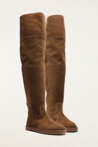 Embrace effortless elegance with these Brown Over The Knee Flat Boots from FARM Rio. Crafted in a sumptuous suede finish, their tall, sleek silhouette gently wraps the legs, creating a graceful line that feels both warm and inviting. The subtle seam detailing adds a hint of structure while maintaining softness. These boots blend playful charm with cozy sophistication, making them a captivating addition to your footwear collection. Ref.: 350829