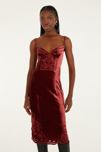 Embrace vibrant joy with the Burgundy Cut-Out Flowers Sleeveless Midi Dress from FARM Rio. Featuring a flattering sweetheart neckline and playful cut-out floral details, this dress blends bold burgundy hues with delicate patterns that dance with every movement. Its flowing midi silhouette offers an effortless, breezy charm, capturing the spirit of carefree elegance wrapped in warmth and softness. Perfect for moments where lighthearted style meets timeless comfort. - Closure: Invisible Zipper At Center Back - Sleeve type: Sleeveless Ref.: 352006 Composition 80% VISCOSE 20% NYLON Care Instructions DO NOT WASH, DO NOT BLEACH, DO NOT TUMBLE DRY, LINE DRY, IRON AT LOW HEAT, DO NOT DRY CLEAN Fabric origin: China Product manufacturing: China Product printing: China