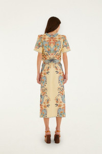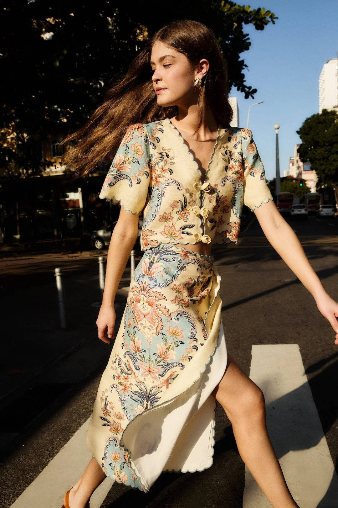 Step into effortless elegance with the Butter Yellow Boho Beauty Midi Skirt by FARM Rio. Crafted from Euroflax™ premium linen, this skirt showcases a vibrant, buttery yellow hue that dances with the warmth of the sun. Its flowing silhouette gently sways with every step, while subtle pleats add a playful dimension. Designed to celebrate freedom and comfort, it breathes easily, inviting a carefree spirit in every sunny stroll. - Closure: Button - Button type: Plastic Buttons Ref.: 348847 Composition 100% LINEN Care Instructions MACHINE WASH, GENTLE CYCLE, DO NOT BLEACH, DO NOT TUMBLE DRY, LINE DRYING, IRON AT LOW HEAT, DO NOT DRY CLEAN Fabric origin: China Product manufacturing: China Product printing: China