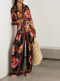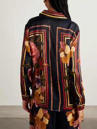 Farm Rio's bold collections are inspired by the vibrancy of Brazil and its landscapes. This shirt is cut from satin for a relaxed fit and printed with flowers and stripes that look as though they're made from fluffly chenille.