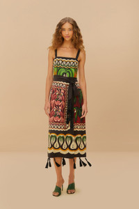Embrace tropical elegance with the Off-White Coconut Tree Flow Lenzing™ Ecovero™ Euroflax™ Dress. This piece features a playful square neckline and eye-catching patterns of rich greens, reds, and earthy tones, harmoniously flowing across the fabric. The elegant tassel accents add a whimsical touch to its silhouette. Crafted from responsible materials, it's an exquisite blend of style and care, capturing the vibrant spirit of FARM Rio. LENZING™ ECOVERO™: the eco-responsible fibers generate up to 50% lower emissions and water impact compared to generic viscose. FARM Rio Ref.: sku_331961 Composition 55% LINEN 45% VISCOSE Care Instructions HAND WASH SEPARATELY, DO NOT BLEACH, DO NOT TUMBLE DRY, LINE DRYING, IRON AT LOW HEAT, DO NOT DRY CLEAN Product manufacturing: CHINA Product printing: CHINA