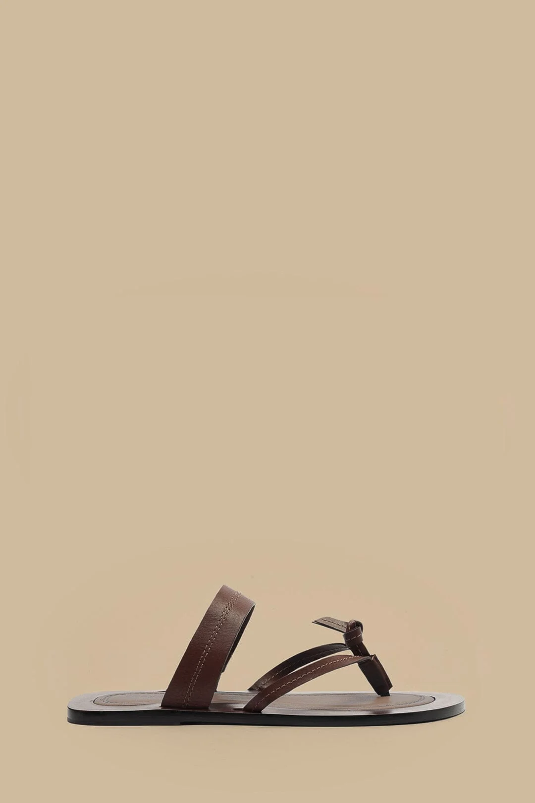 Step into effortless elegance with the Coffee Tie Flat Sandal from FARM Rio. Featuring rich coffee-toned straps and delicate embroidery, this sandal perfectly blends comfort and style. Crafted from responsible materials, its unique tie design adds a playful touch to any outfit. The sandal's flat silhouette combined with intricate detailing makes it an ideal choice for warm, sunlit strolls and leisurely days. Embrace a laid-back yet chic vibe effortlessly. Ref.: sku_341120 Composition Leather Upper & Sole