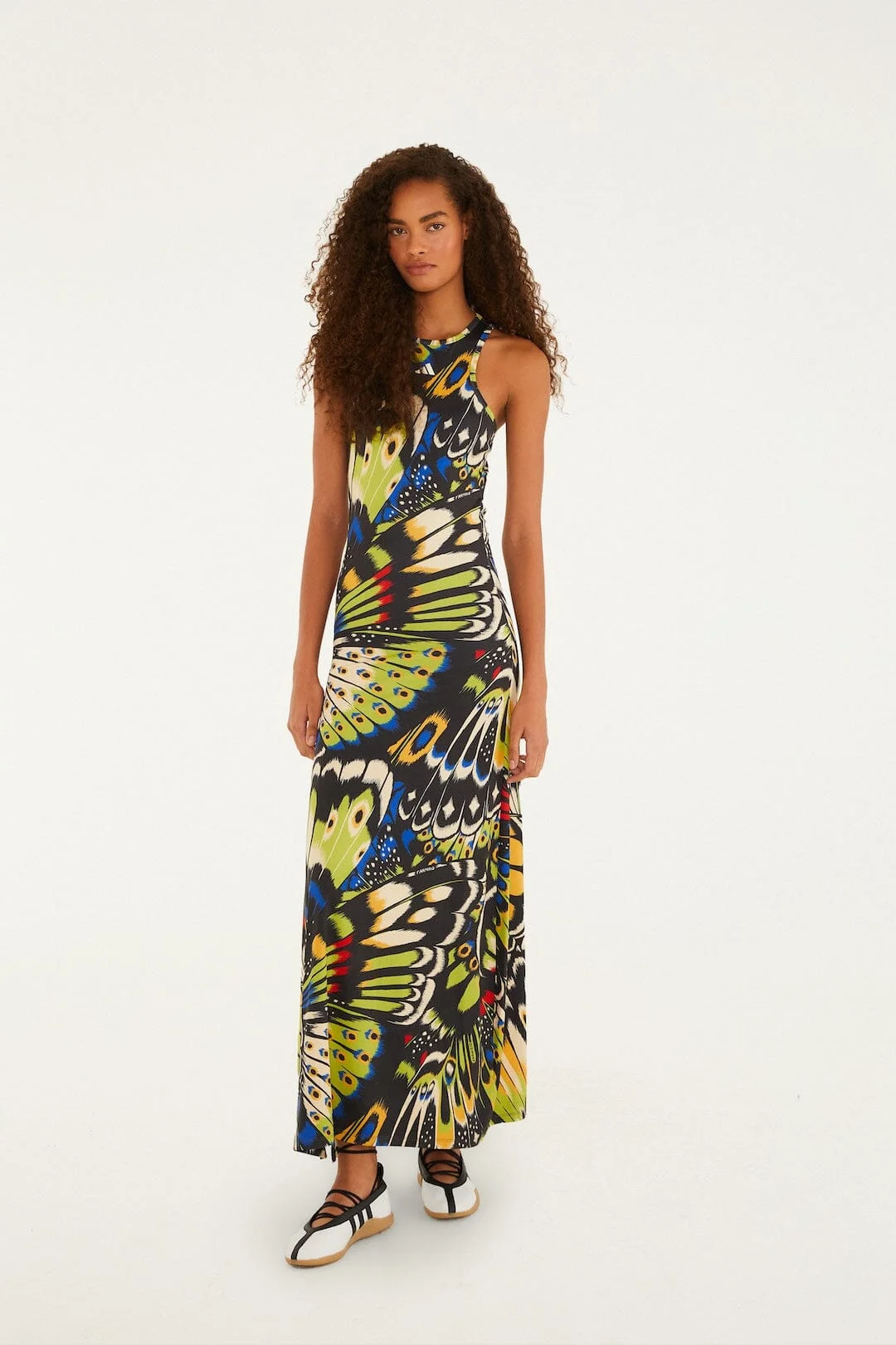 The Colorfly Green Adidas Dress from FARM Rio dazzles with an enchanting butterfly-wing print in vibrant greens, blues, yellows, and hints of red. Its sleek, body-skimming silhouette celebrates effortless confidence, while the racerback design with a playful cutout adds an unexpected touch of ease and charm. This dress brings a lively, natural spirit to your wardrobe, inviting movement and joy in every step. Ref.: JL8610