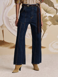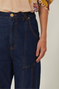 Introducing the Dark Denim High Waist Snips Pants by FARM Rio, crafted from conscious materials for the modern wardrobe. These high-waisted pants flaunt a rich indigo hue complemented by contrasting embroidery and snip details, creating an aura of casual sophistication. Cut to perfection, their relaxed silhouette makes for an effortlessly chic cornerstone that moves with you, inviting warmth and style into every step. Enrich your collection with a piece that blends traditional denim charm with a refined twist. Ref.: sku_329081