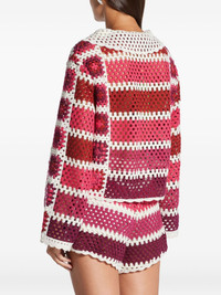 crochet-knit cardigan Highlights - Pink - Crochet knit - Peter pan collar - Button fastening - Long sleeves Imported Composition Polyester 100% Washing instructions Read Manufacturer Guidelines