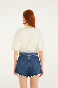 Denim Crochet Embroidery Belted Shorts