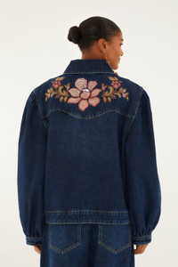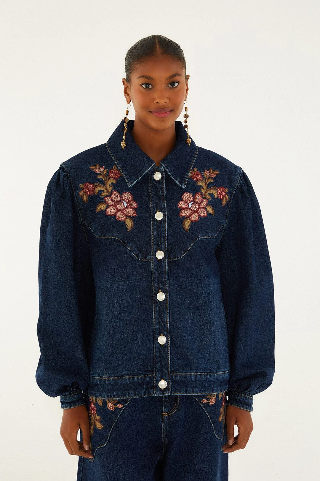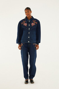 Embrace the spirit of joyful elegance with the Denim Flower Embroidery Jacket by FARM Rio. Crafted in rich indigo denim, its relaxed silhouette is elevated by gentle puffed sleeves and a classic collar neckline. Adorned with warm, intricate floral embroidery on the chest and back yoke, this jacket marries soft femininity with playful artistry, inviting you to celebrate everyday moments with natural charm and effortless style. - Closure: Center Front Buttons - Button type: Metal Button - Pockets: Patch Pockets - Sleeve type: Long Sleeve Ref.: 344807 Composition 100% COTTON Care Instructions MACHINE WASH GENTLE CYCLE, DO NOT BLEACH, DO NOT TUMBLE DRY, LINE DRYING, IRON AT MEDIUM HEAT, DRY CLEAN WITH ANY SOLVENT EXCEPT TRICHLOROETHYLENE Fabric origin: Turkey Product manufacturing: Turkey Product printing: Turkey