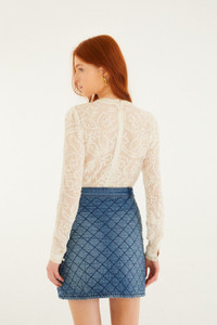 Embrace vibrant charm with FARM Rio’s Denim Quilted Mini Skirt, where playful quilting stitches create a textured, dynamic surface. The rich indigo hue pairs perfectly with pops of colorful floral embroidery, adding a touch of Brazilian zest. Its A-line silhouette flatters every step, while the slightly flared cut brings movement and ease. This skirt is an effortless celebration of joyful patterns and comfortable style for sunny days and spirited nights. Ref.: 351983