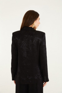 Embrace the allure of the Black Leopard Buttoned Jacquard Blazer from FARM Rio. This outerwear piece features a deep V neckline and a sleek double-button front, while the jacquard fabric plays with tonal black leopard patterns that shimmer softly in the light. The structured yet relaxed silhouette lends an effortless poise, inviting you to feel both confident and touched by a playful, mysterious elegance. - Closure: Center Front Buttons - Button type: Plastic Button - Pockets: Patch Pockets - Sleeve type: Long Sleeve Ref.: 346056 Composition 100% VISCOSE Care Instructions MACHINE WASH GENTLE CYCLE, DO NOT BLEACH, DO NOT TUMBLE DRY, LINE DRYING, IRON AT MEDIUM HEAT, DRY CLEAN WITH ANY SOLVENT EXCEPT TRICHLOROETHYLENE Fabric origin: Turkey Product manufacturing: Turkey Product printing: Turkey