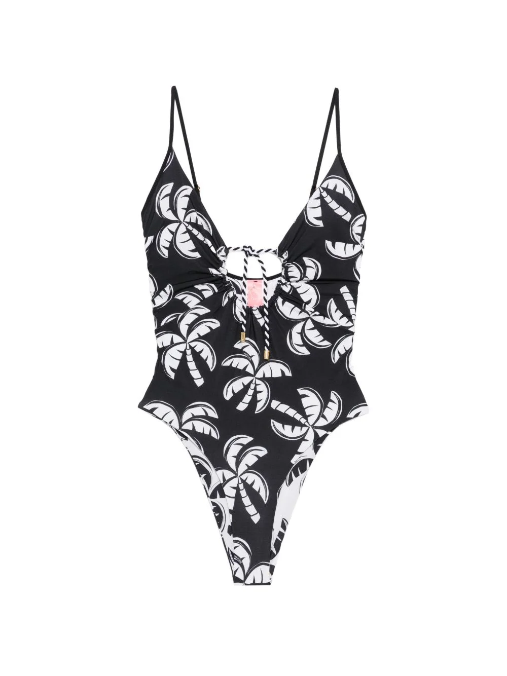black swimsuit Highlights - Black - Palm print - Tie detail - Be mindful to try on swimwear over your own garments. Imported Composition Polyamide 76%, Elastane 24% Washing instructions Machine Wash