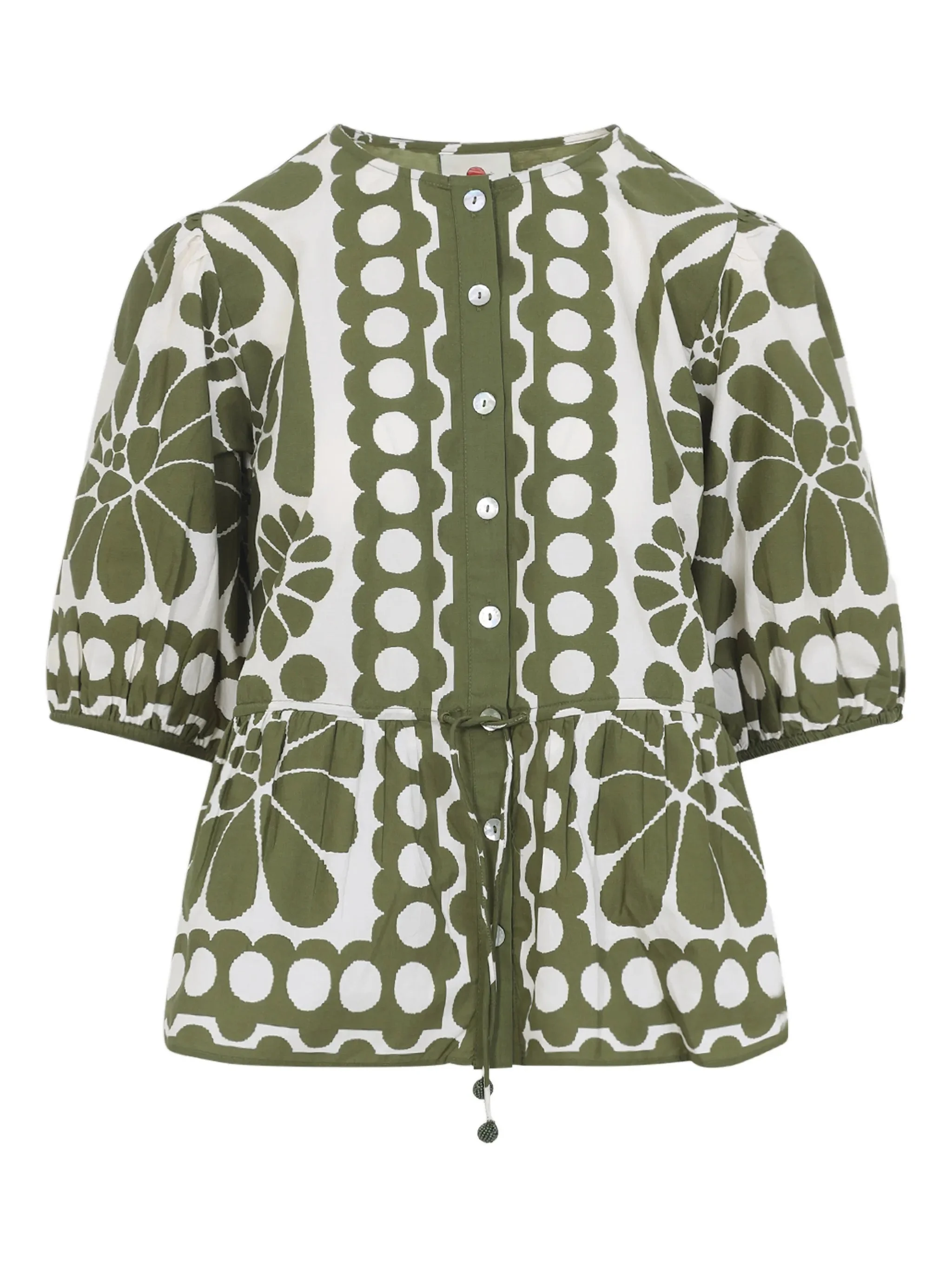 palermo green floral print front button fastening drawstring three-quarter sleeves round neck - Color: WHITE/GREEN - Made in: India - Designer Style ID: 344603 26083 Composition and care Cotton: 100.0%