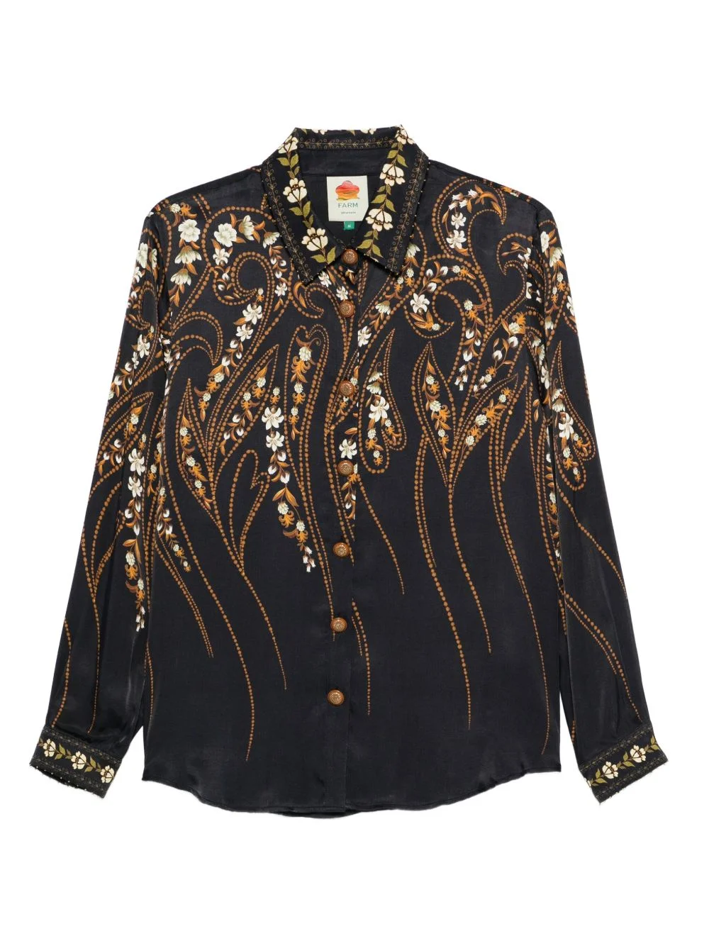 floral button shirt Highlights - Black - Floral print - Button fastening - Long sleeves - Buttoned cuffs - Embroidered collar Imported Composition Viscose 100% SIZE & FIT Model measurements Height 5 ft 9 in(1.76 m) Bust/Chest 31.88 in(81 cm) Hips 35.43 in(90 cm) Waist 24.8 in(63 cm)