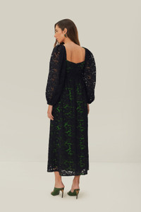 Black Lace Long Sleeve Midi Dress