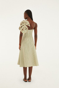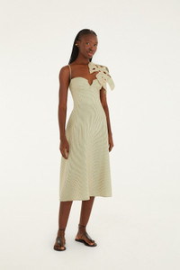 Embrace the vibrant spirit of summer with FARM Rio’s Green Striped 3D Monstera Leaf Midi Dress. Crafted from Euroflax® premium linen, this dress features playful green stripes intertwined with textured 3D monstera leaves, bringing tropical charm to life. The sweetheart neckline beautifully frames the collarbone, while the fluid midi silhouette moves with effortless grace. Lightweight and breathable, it’s a joyful celebration of nature, comfort, and elegant ease. - Closure: Invisible Zipper At Center Back - Sleeve type: Sleeveless Ref.: 344014 Composition 100% LINEN Care Instructions HAND WASH SEPARATELY, DO NOT BLEACH, DO NOT TUMBLE DRY, DRY FLAT, IRON AT LOW HEAT, DRY CLEAN WITH ANY SOLVENT EXCEPT TRICHLOROETHYLENE Fabric origin: China Product manufacturing: China Product printing: China