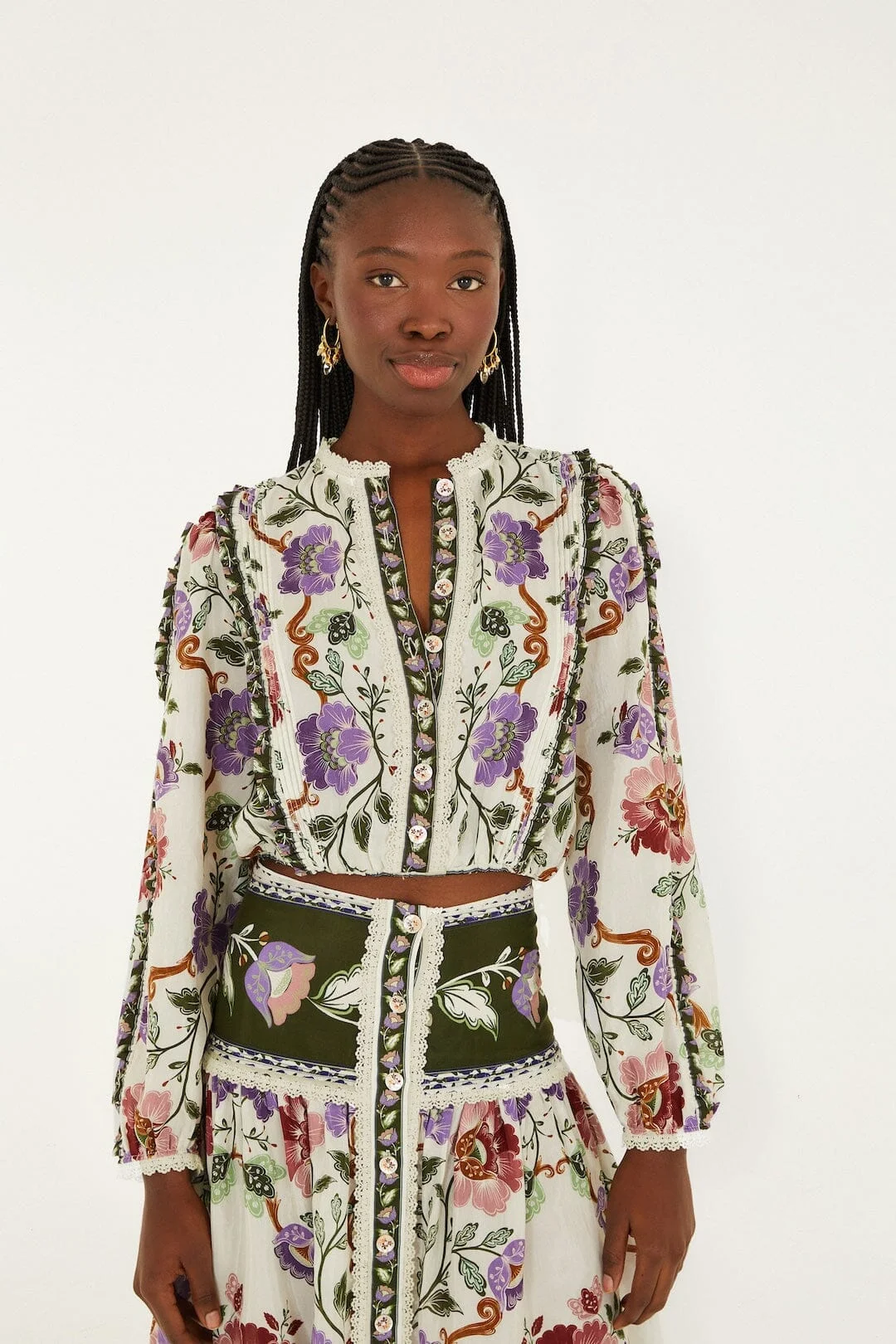 Embrace effortless elegance with the Cream Rococo Flowers Lace Long Sleeve Blouse from FARM Rio. This dreamy top features delicate lace adorned with intricate floral Rococo patterns that dance softly across the fabric. The round neckline frames the collarbone gently, while billowy long sleeves add a romantic, airy silhouette. Its cream hue brings a tender warmth, making it the perfect piece to bring a touch of playful sophistication to your day. - Closure: Center Front Buttons - Button type: Plastic Button - Sleeve type: Long Sleeve Ref.: 344234 Composition 60% COTTON 40% VISCOSE Care Instructions MACHINE WASH GENTLE CYCLE, DO NOT BLEACH, DO NOT TUMBLE DRY, DRY FLAT, IRON AT MEDIUM, DO NOT DRY CLEAN Fabric origin: China Product manufacturing: China Product printing: China