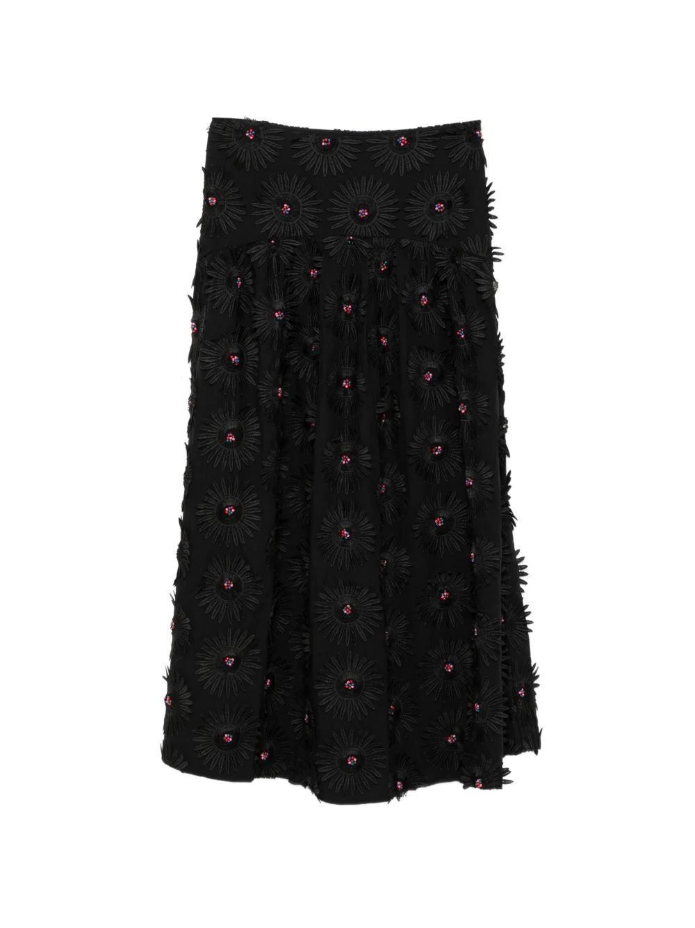 floral-applique midi skirt Highlights - Black - Side zip fastening - Bead embellishments Imported Composition Polyester 75%, Cotton 25% Washing instructions Hand Wash