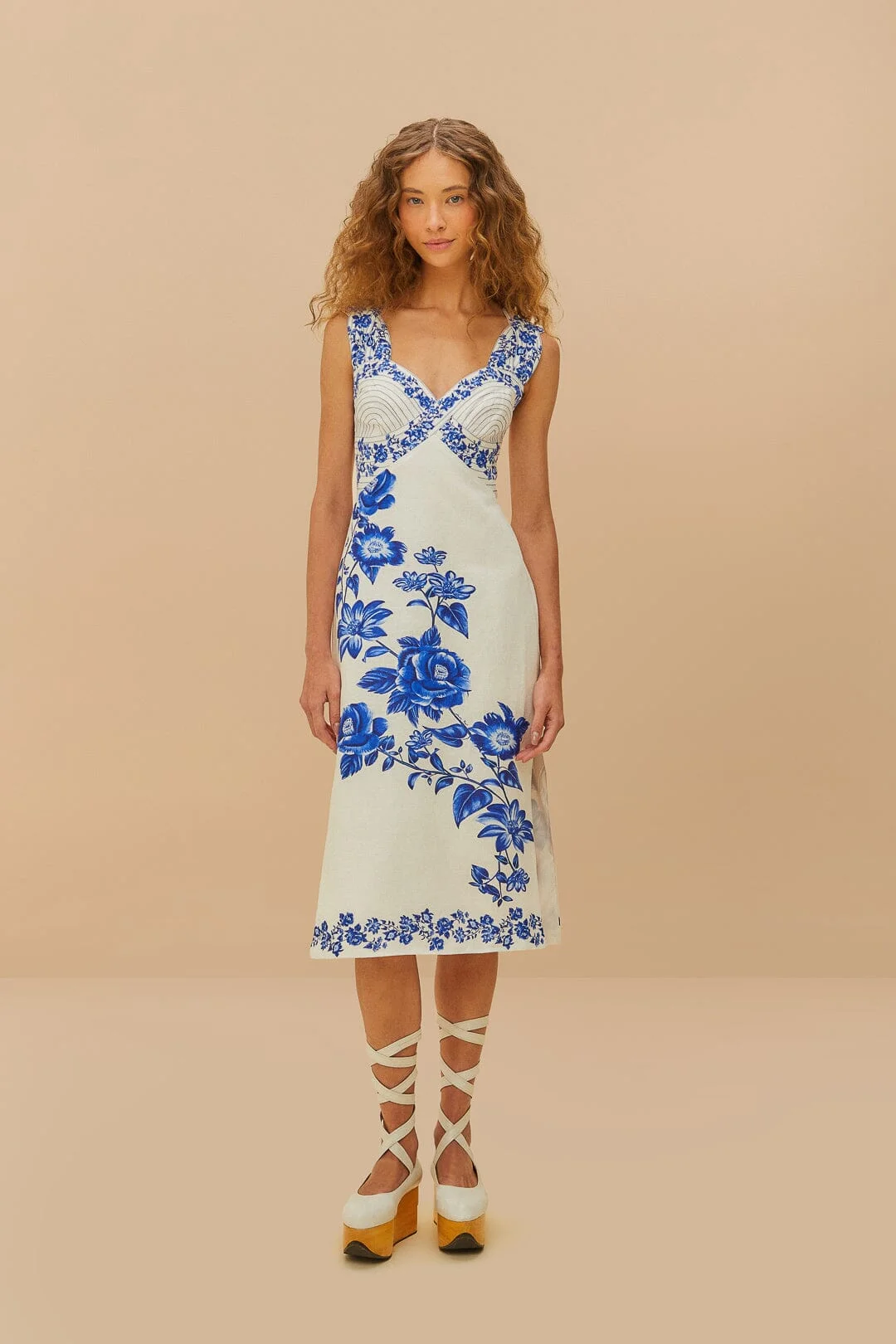 Capture the essence of elegance with the Off-White Floral Cascade Wavy Midi Dress from FARM Rio. Featuring a striking one-shoulder design, this piece showcases vibrant blue floral patterns cascading down its responsible materials. The fluid silhouette and playful wavy hemline evoke a sense of timeless charm, effortlessly blending grace and modernity. Embrace warmth and style with a dress that is both joyful and refined. Euroflax™ Premium Linen: certified GMO-free plant fiber produced without artificial irrigation that has guaranteed traceability and proven comfort, thermoregulation, moisture management, and breathability. Ref.: sku_332943 Composition 100% LINEN Care Instructions MACHINE WASH GENTLE CYCLE, DO NOT BLEACH, DO NOT TUMBLE DRY, LINE DRYING, IRON AT LOW HEAT, CRY CLEAN WIH ANY SOLVENT EXCEPT TRICHLOROETHYLENE