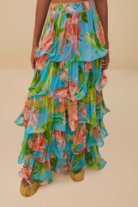 The Blue Lily Bloom Maxi Skirt is a vibrant celebration of color and movement. Its enchanting floral pattern bursts to life on a dreamy blue canvas, while cascading layers of ruffles create a whimsical, flowing silhouette. This skirt's playful charm is effortlessly balanced by its elegant design, inviting you into a world of joyful expression. A piece that captures the warmth and vitality of nature, perfectly blending softness and flair. - Closure: Invisible zipper at side seam Ref.: sku_335827 Composition 100% COTTON Care Instructions MACHINE WASH GENTLE CYCLE, DO NOT BLEACH, DO NOT TUMBLE DRY, LINE DRY IN THE SHADE, IRON AT LOW HEAT, DRY CLEAN WITH ANY SOLVENT EXCEPT TRICHLOROETHYLENE Product manufacturing: INDIA Product printing: INDIA
