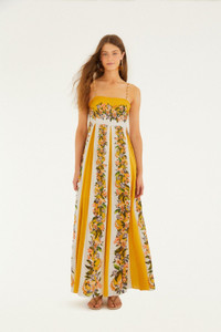 Embrace effortless elegance with the Sand Hilo Stripes Maxi Dress from FARM Rio. Its playful striped pattern in sun-kissed hues dances along the flowing silhouette, while the structured square neckline adds a touch of modern charm. Crafted to move with you, the dress features soft, breathable fabric that invites warm days and gentle breezes. Perfectly balanced between relaxed and refined, it’s a delightful celebration of vibrant Brazilian spirit and timeless style. - Closure: Invisible Zipper At Side Seam - Pockets: Side Seam Pockets - Sleeve type: Sleeveless Ref.: 351309 Composition 100% COTTON Care Instructions MACHINE WASH, EXTRA GENTLE CYCLE, DO NOT BLEACH, DO NOT TUMBLE DRY, LINE DRYING, IRON AT LOW HEAT, DO NOT DRY CLEAN Fabric origin: India Product manufacturing: India Product printing: India