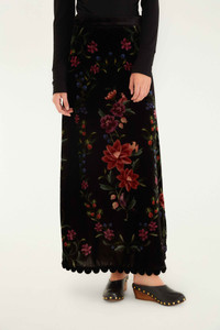 The Black Belle Garden Scallop Hem Midi Skirt enchants with its rich black velvet backdrop adorned by vibrant, painterly floral motifs. Flowing into a graceful midi length, it features a charming scalloped hem that adds a whimsical, textured finish. This skirt beautifully blends classic elegance with playful garden-inspired artistry, inviting warmth and a touch of enchantment into your everyday wardrobe.- Closure: Invisible Zipper At Side Seam Ref.: 340200 Composition 80% VISCOSE 20% NYLON Care Instructions DO NOT WASH, DO NOT BLEACH, DO NOT TUMBLE DRY, LINE DRYING, IRON AT LOW HEAT, DRY CLEAN WITH ANY SOLVENT EXCEPT TRICHLOROETHYLENE Fabric origin: China Product manufacturing: China Product printing: China