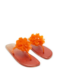 flower-embellished thong sandals Highlights - Orange - Flower embellishment - Thong style - Flat sole - Ombre effect - Translucent material Imported Composition Outer: Rubber 100% Lining: Rubber 100% Sole: Rubber 100%