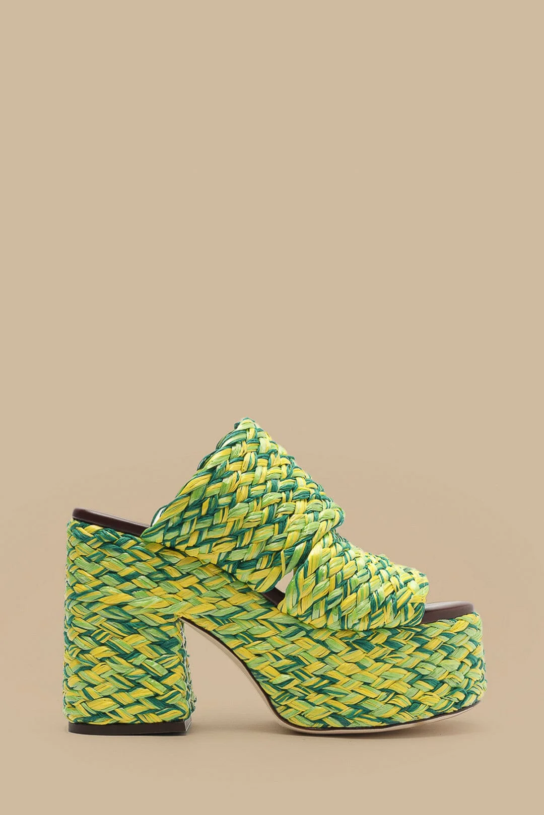 Step into playful elegance with the Green And Yellow Braided Raffia Platform Sandal by FARM Rio. These sandals boast vibrant braided raffia in lively green and yellow hues, adding a splash of color to your stride. The platform design offers both style and comfort, while the intricate embroidery elevates its uniqueness. Made from responsible materials, they ensure you move with confidence and flair. Ref.: sku_341313 Composition Textile Upper & Leather Sole