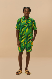 Freshen up your style with the Green Banana Aquarela LENZING™ ECOVERO™ Viscose Shorts. Bursting with vibrant green and yellow hues, the lush banana leaf print dances playfully across the fabric, while the relaxed fit and curved hem offer a breezy silhouette. Perfectly crafted with responsible materials, these shorts promise comfort and charm, bringing a playful touch of tropical delight to your wardrobe. LENZING™ ECOVERO™: the eco-responsible fibers generate up to 50% lower emissions and water impact compared to generic viscose. Ref.: sku_332997 Composition 100% RAYON Care Instructions MACHINE WASH GENTLE CYCLE, DO NOT BLEACH, DO NOT TUMBLE DRY, LINE DRYING, IRON AT LOW HEAT, CRY CLEAN WIH ANY SOLVENT EXCEPT TRICHLOROETHYLENE Product manufacturing: CHINA Product printing: CHINA