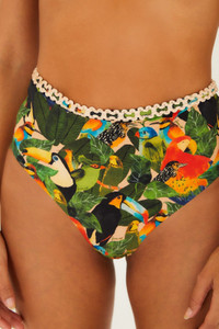 Green Bird Leaves High Waist Bikini Bottom