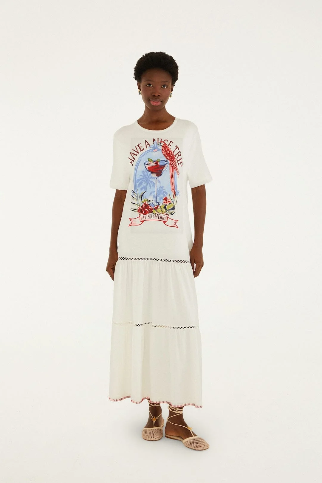 Slip into the Have A Nice Trip Organic Cotton Maxi Dress, where vibrant tropical hues meet carefree elegance. Crafted from GOTS-certified organic cotton, this dress features a flowing silhouette that dances with every step and a soft round neckline framing your natural glow. Bursting with lively prints inspired by Brazil’s landscapes, its breathable fabric wraps you in comfort and sustainability, inviting effortless days filled with warmth and playful spirit.- Sleeve type: Short Sleeve Ref.: 348558 Composition 100% COTTON Care Instructions MACHINE WASH, GENTLE CYCLE, WASH INSIDE OUT, DO NOT BLEACH, DO NOT TUMBLE DRY, LINE DRYING, IRON AT MEDIUM HEAT, DO NOT DRY CLEAN, WASH WITH SIMILAR COLOURS Fabric origin: Turkey Product manufacturing: Turkey Product printing: Turkey