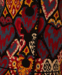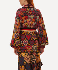 DETAILS Knitted blazer Relaxed fit Long balloon sleeves Shawl collar Front button fastening Detachable buckle belt Heart-shaped patch pockets Blanket stitch embroidery Hearts Ikat print COMPOSITION & CARE 55% Acrylic; 35% Polyamide; 10% Wool Hand wash