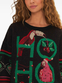 Hohoho sweater Highlights - Black - Hohoho lettering - Balloon sleeves - Fair isle intarsia knit - Crew neck Imported Composition Acrylic 55%, Polyamide 35%, Wool 10% Washing instructions Read Manufacturer Guidelines