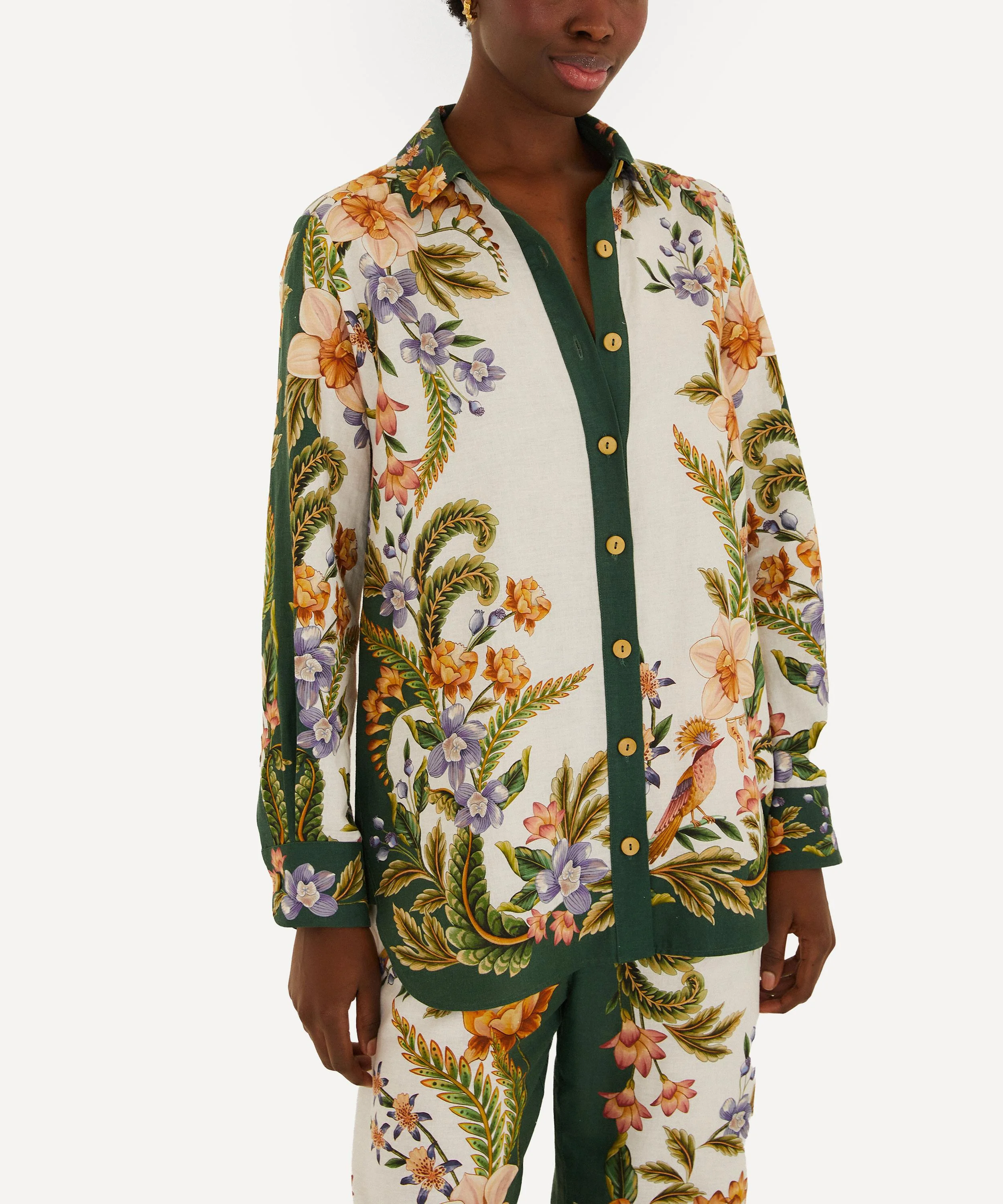 DETAILS Linen shirt Relaxed fit Long sleeves Point collar Button placket Sand Nature print COMPOSITION & CARE 55% Linen; 45% Viscose Machine wash, gentle cycle