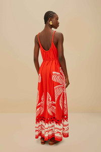 The Red Majestic Coconut Tree LENZING™ ECOVERO™ Euroflax™ Maxi Dress captures the essence of tropical elegance. Its vibrant red hue, adorned with intricate coconut tree motifs, flows gracefully into a playful hemline, adding a touch of whimsy. Crafted from responsible materials, this dress features a round neckline and a breezy, relaxed silhouette, perfect for sunlit strolls. The perfect blend of comfort and style, it radiates effortless charm. - Pockets: Side seam pockets - Sleeve type: Sleeveless 100% LENZING™ ECOVERO™ Viscose: the eco-responsible fibers generate up to 50% lower emissions and water impact compared to generic viscose. Euroflax™ Premium Linen: certified GMO-free plant fiber produced without artificial irrigation that has guaranteed traceability and proven comfort, thermoregulation, moisture management, and breathability. Ref.: sku_336315 Composition 55% LINEN 45% VISCOSE Care Instructions HAND WASH SEPARATELY, DO NOT BLEACH, DO NOT TUMBLE DRY, LINE DRYING, IRON AT LOW HEAT, DO NOT DRY CLEAN Product manufacturing: CHINA Product printing: CHINA