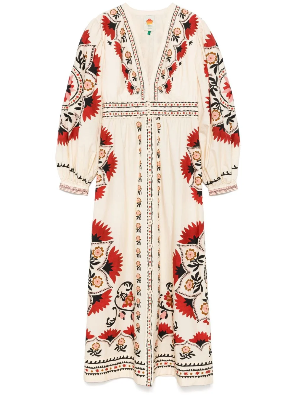 Mandala maxi dress Highlights - Almond beige - Front button fastening - Balloon sleeves Imported Composition Outer: Cotton 100% Lining: Polyester 100% SIZE & FIT Model measurements Height 5 ft 11 in(1.8 m) Bust/Chest 31.49 in(80 cm) Hips 35.82 in(91 cm) Waist 24.8 in(63 cm) Measurement SLEEVE LENGTH 24.4 in(62 cm) HIPS 45.66 in(116 cm) LENGTH 53.93 in(137 cm) WAIST 30.7 in(78 cm) FittingInformation Designed for a slim fit that sits just away from the body offering a close yet comfortable fit Made from a midweight non-stretch fabric Washing instructions Machine Wash