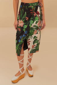 Step into a tropical paradise with the Mixed Midnight Macaw Fiesta Lenzing™ Ecovero™ Euroflax™ midi skirt. Its lush, vibrant pattern of macaws and foliage captivates, while the elegant wrap silhouette adds a playful charm. Made of responsible materials, this skirt offers a beautiful harmony of style and substance. The bold colors and split detail make every step a celebration of nature's beauty. LENZING™ ECOVERO™: the eco-responsible fibers generate up to 50% lower emissions and water impact compared to generic viscose. FARM Rio Ref.: sku_332956 Composition 55% LINEN 45% VISCOSE Care Instructions HAND WASH SEPARATELY, DO NOT BLEACH, DO NOT TUMBLE DRY, LINE DRYING, IRON AT LOW HEAT, DO NOT DRY CLEAN Product manufacturing: CHINA Product printing: CHINA