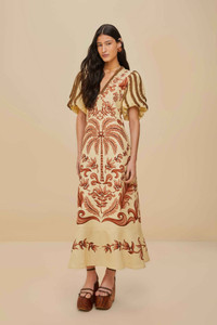 Step into effortless elegance with the off-white Milani Euroflax™ premium linen maxi dress. Adorned with exquisite embroidery, this piece features an inviting V neckline and gracefully puffed sleeves, creating a harmonious blend of sophistication and playfulness. The warm earthy tones dance beautifully across the responsibly crafted fabric, while intricate patterns evoke a sense of timeless charm. Embrace the artistry in every thread with this captivating creation. - Closure: Invisible zipper at center back - Sleeve type: Short sleeve Euroflax™ Premium Linen: certified GMO-free plant fiber produced without artificial irrigation that has guaranteed traceability and proven comfort, thermoregulation, moisture management, and breathability. Ref.: sku_328798 Composition 100% LINEN Care Instructions HAND WASH SEPARATELY, DO NOT BLEACH, DO NOT TUMBLE DRY, LINE DRYING, IRON AT LOW HEAT, DO NOT DRY CLEAN Product manufacturing: CHINA Product printing: CHINA